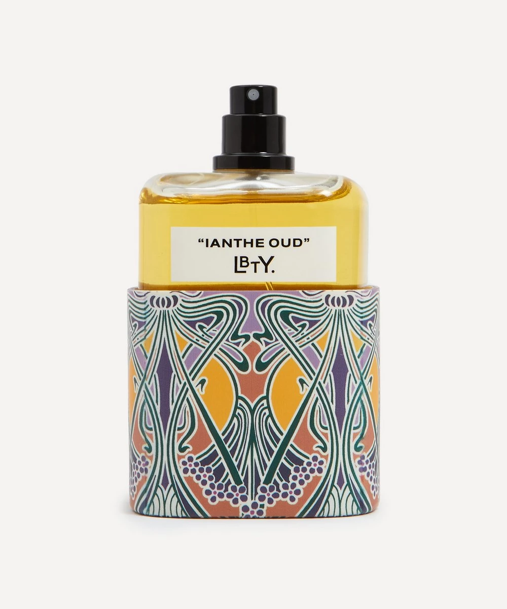 - Housed in a sleek glass bottle with a unique cap dressed in Liberty’s archival Ianthe print